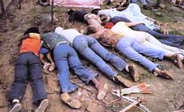 Μέσα σε λίγη ώρα σχεδόν όλοι έπεσαν νεκροί. Οικογένειες αγκαλιασμένες, μάνες με παιδιά στα χέρια, αδέρφια κρατημένα χέρι – χέρι. Από τους 918 νεκρούς οι 270 ήταν παιδιά. Ο Τζόουνς δεν ήπιε το κυάνιο. Αυτοπυροβολήθηκε.