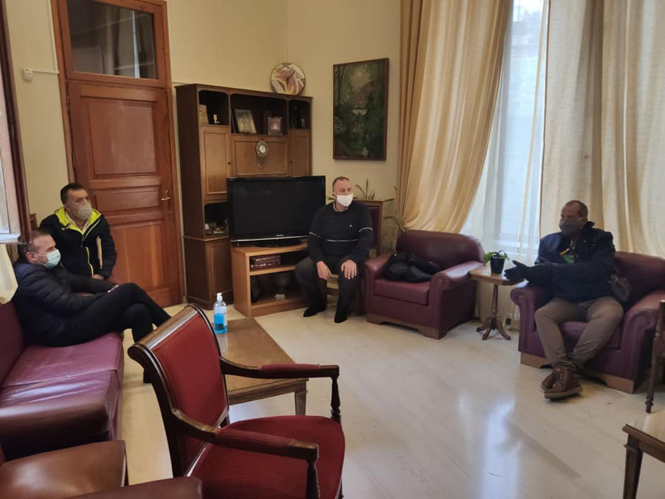 Η συνάντηση πραγματοποιήθηκε στο γραφείο του Δημάρχου στη Λότζια. Συζητήθηκαν το θέμα της συντήρησης του χλοοτάπητα, της έκδοσης της οικοδομικής άδειας για την ανέγερση του νέου στεγάστρου στην κεντρική κερκίδα και εκείνο της αποκατάστασης των ζημιών στα γραφεία του συλλόγου.
