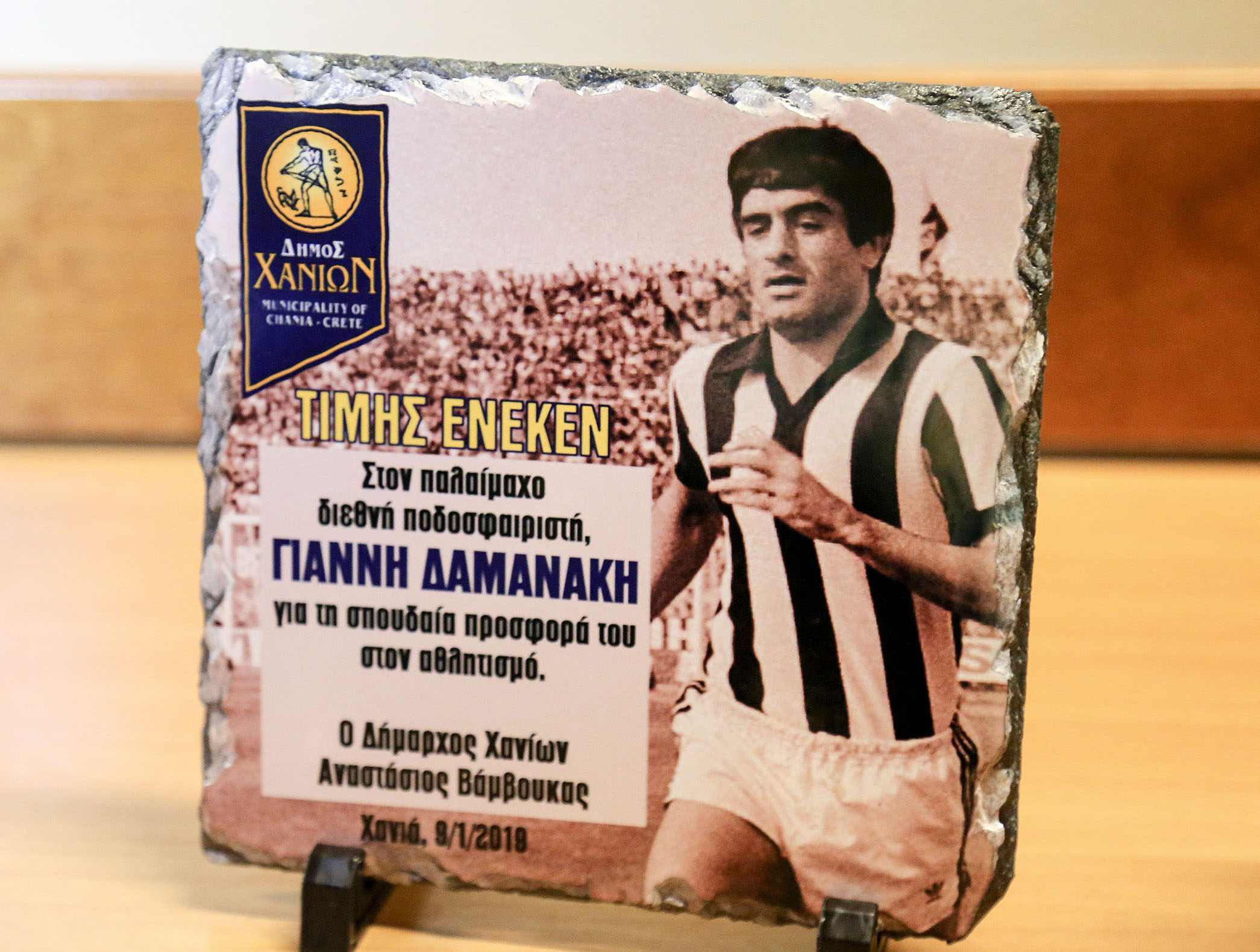 Μέσα σε κλίμα συγκίνησης πραγματοποιήθηκε το απόγευμα της Τετάρτης η βράβευση του Χανιώτη ποδοσφαιριστή Γιάννη Δαμανάκη από τον δήμο Χανίων.