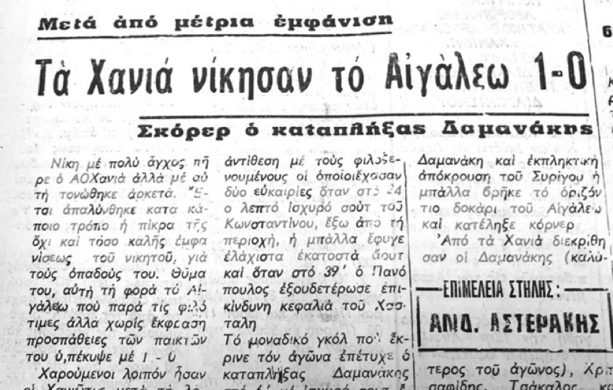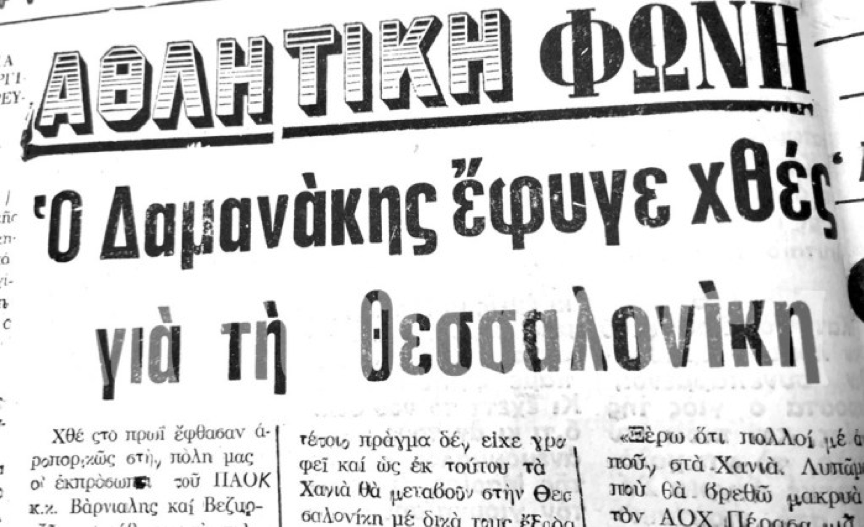 Στο ίδιο ρεπορτάζ, αν μη τι άλλο πράγμα σπάνιο για εκείνη την εποχή, αναφέρονται λεπτομέρειες για τη μεταγραφή του Δαμανάκη στον ΠΑΟΚ, όπου δυστυχώς στο ρεπορτάζ δεν διακρίνεται καθαρά το ποσό που δόθηκε στον Α.Ο. Χανιά, αλλά ο ίδιος ο Δαμανάκης συμφώνησε να λάβει για την μεταγραφή του, 240.000 δραχμές. Ακόμα, συμφωνήθηκε ανάμεσα στις δύο ομάδες να γίνουν δύο φιλικά παιχνίδια, με τις εισπράξεις να διατίθεντο στον ΑΟΧ.