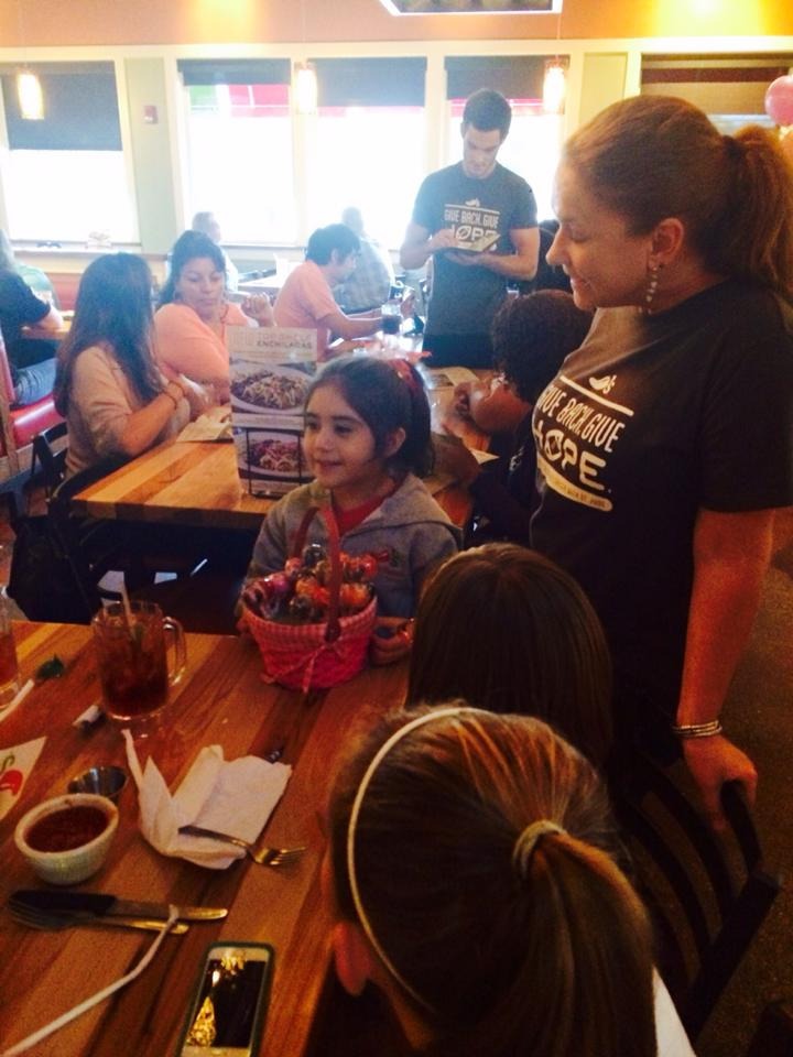 Ένα 6χρονο κορίτσι που κατάφερε να καταπολεμήσει τον καρκίνο της, το περασμένο Σαββατοκύριακο πήγε σε ένα τοπικό εστιατόριο για να συγκεντρώσει χρήματα για την έρευνα του καρκίνου.