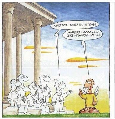 Το Πάσχα δε θα μπορούσε να άφηνε ασυγκίνητο το διάσημο γελοιογράφο "Αρκά". Έτσι για.. να λέμε τα σύκα σύκα και τη σκάφη- σκάφη, γίνεται η παρακάτω διευκρίνηση προς αποφυγή παρεξηγήσεων!