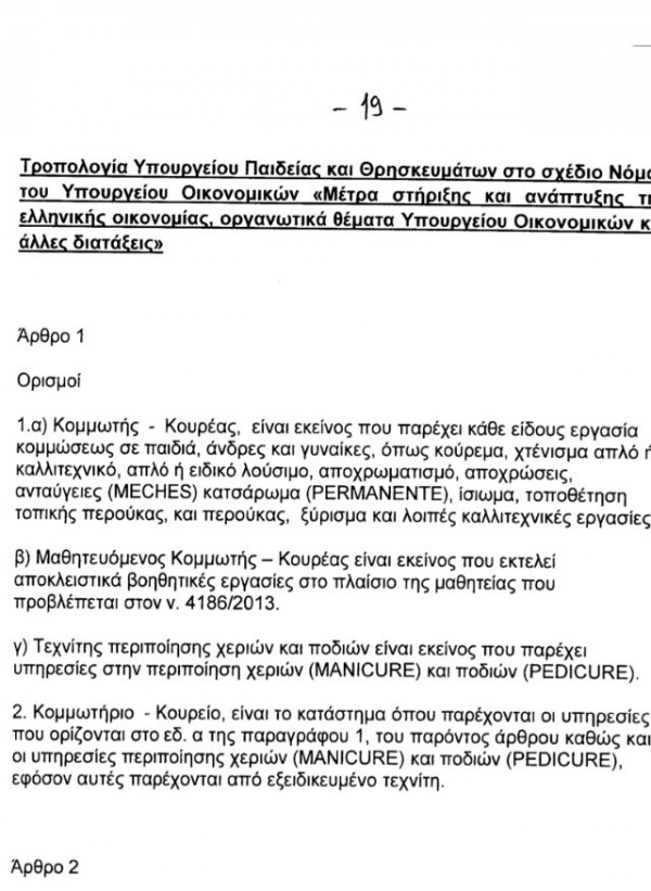 Όταν η κυβέρνηση έχει… οίστρο, δεν αφήνει τίποτα στην τύχη του. Στο περιβόητο πολυνομοσχέδιο συμπεριέλαβε και τον ορισμό της κομμωτικής για να ξεδιαλύνει απολύτως το τοπίο στα "μέτρα στήριξης της ελληνικής οικονομίας". Μάλλον κάποιος σφύριξε στον κύριο Γκίκα πως τα κομμωτήρια ψιλοδουλεύουν ακόμη.