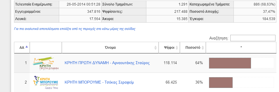 Επίσημα αποτελέσματα σε 886 εκλογικά τμήματα σε επίπεδο Περιφέρειας Κρήτης