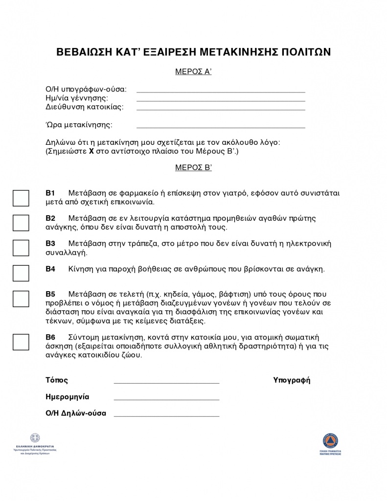 Βεβαίωση Κατ’ Εξαίρεση Μετακίνησης Πολιτών (PDF)