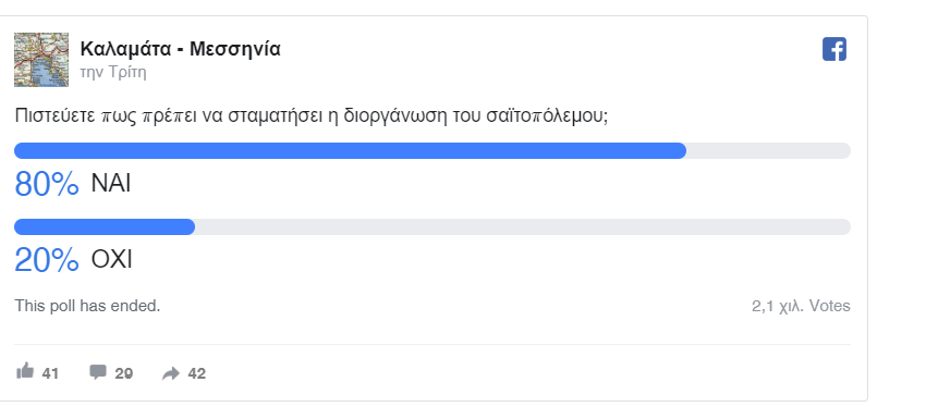 Το αποτέλεσμα της διαδικτυακής δημοσκόπησης της σελίδας «Καλαμάτα - Μεσσηνία»: