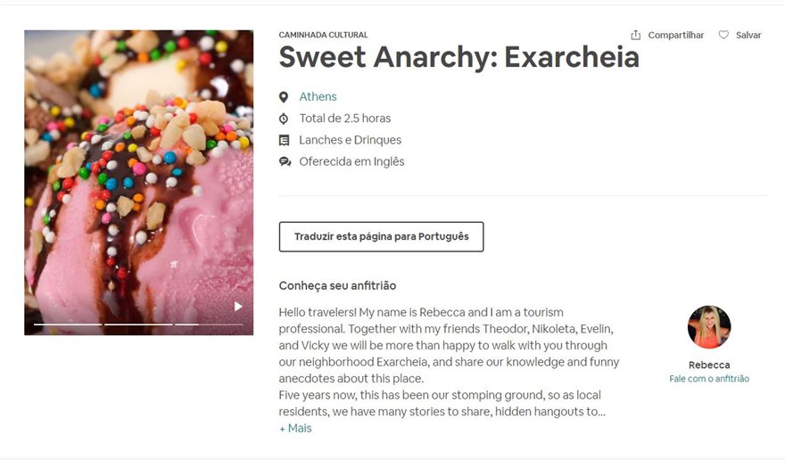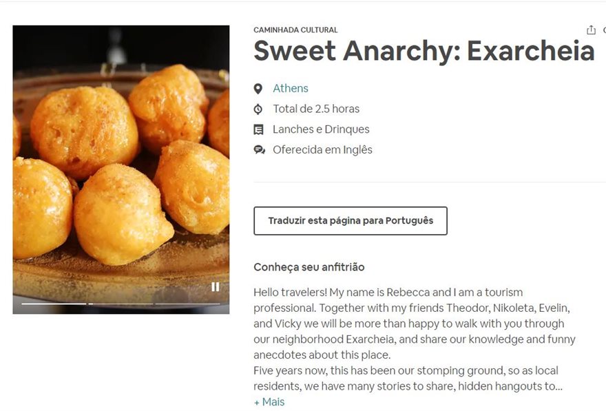 Εν μέσω όλου του μπάχαλου και της βροχής μολότοφ που επικρατεί στην περιοχή, το Airbnb διαφημίζει έναν περίπατο δυόμισι ωρών που έχει τίτλο «Γλυκιά Αναρχία: Εξάρχεια» και ξεκινάει ως εξής: