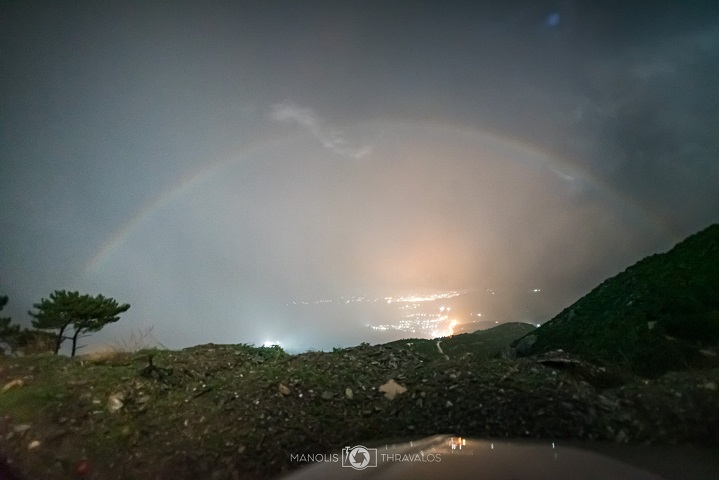 Σύμφωνα με το meteo.gr του Εθνικού Αστεροσκοπείου Αθηνών, ο φωτογράφος Μανώλης Θράβαλος φωτογράφισε ένα moonbow (νυχτερινό ουράνιο τόξο) στους Βουρλιώτες στη βόρεια Σάμο, στις 04:00 τα ξημερώματα της Δευτέρας, καθώς μια ισχύρη μπόρα έφευγε προς τα ανατολικά και το φεγγάρι κατέβαινε προς τη δύση του έχοντας το 94% της φωτεινότητάς του.