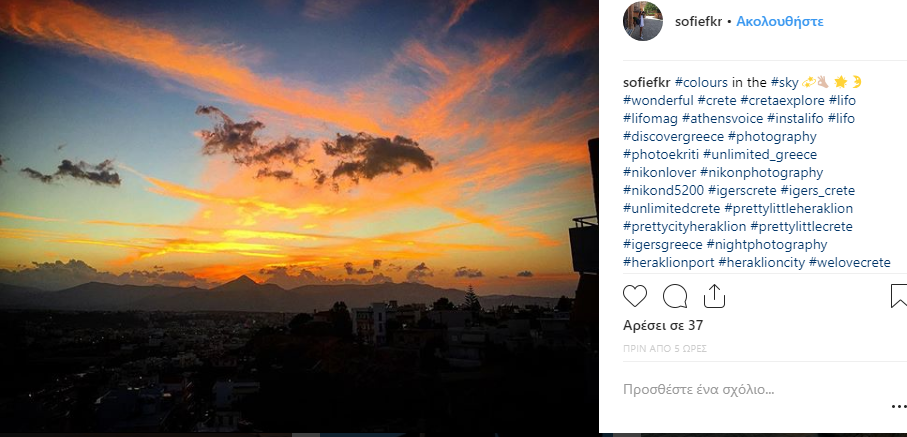 Η φωτογραφία της ημέρας τραβήχτηκε στο Ηράκλειο την ώρα που ο ουρανός βάφτηκε υπυέροχα χρώματα και την μοιράστηκε μαζί μας η χρήστης, Sofiefkr