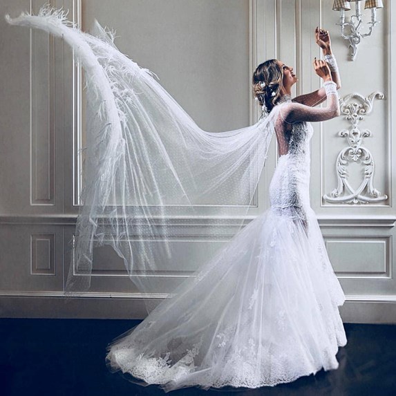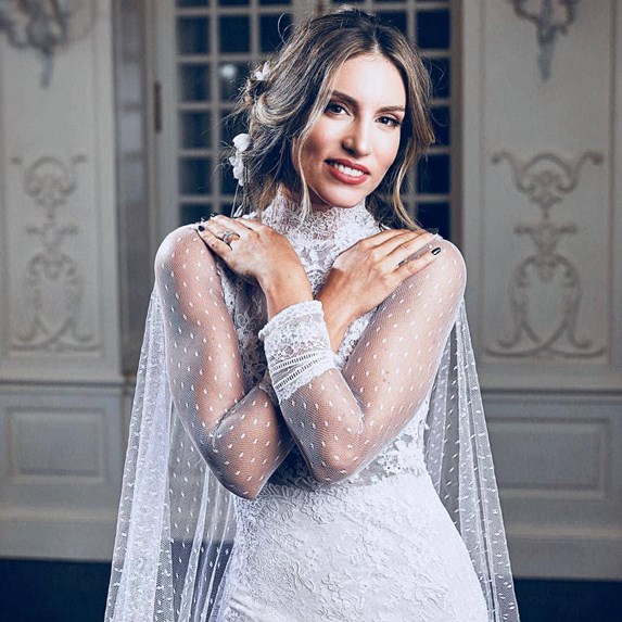 Η Αθηνά Οικονομάκου δημοσίευσε τρεις φωτογραφίες στο Instagram στις οποίες τη βλέπουμε να ποζάρει με το νυφικό της και το χαρακτήρισε ως το «ωραιότερο του κόσμου».