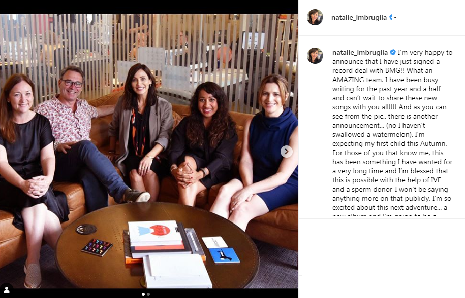Η διάσημη τραγουδίστρια, Νάταλι Ιμπρούκλια, είναι έγκυος και το ανακοίνωσε μέσω Instagram και έκανε εξωσωματική με δωρητή σπέρματος.