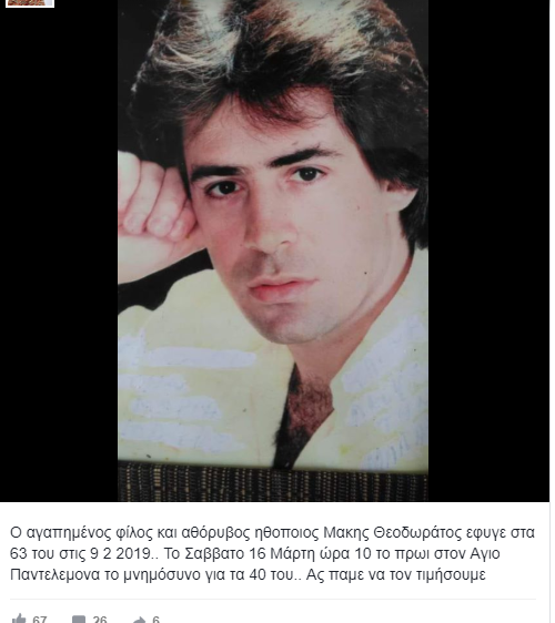 O ηθοποιός, Μάκης Θεοδωράτος, άφησε τη τελευταία του πνοή σε ηλικία 63 ετών πριν από ένα μήνα περίπου και δεν το γνώριζε κανείς.
