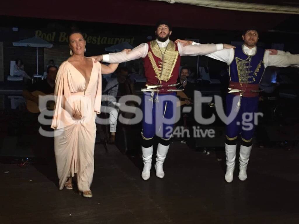 Η Βάνα Μπάρμπα σηκώθηκε προς τιμήν του ζευγαριού και χόρεψε ένα παραδοσιακό Κρητικό χορό και ξεσήκωσε τα πλήθη.