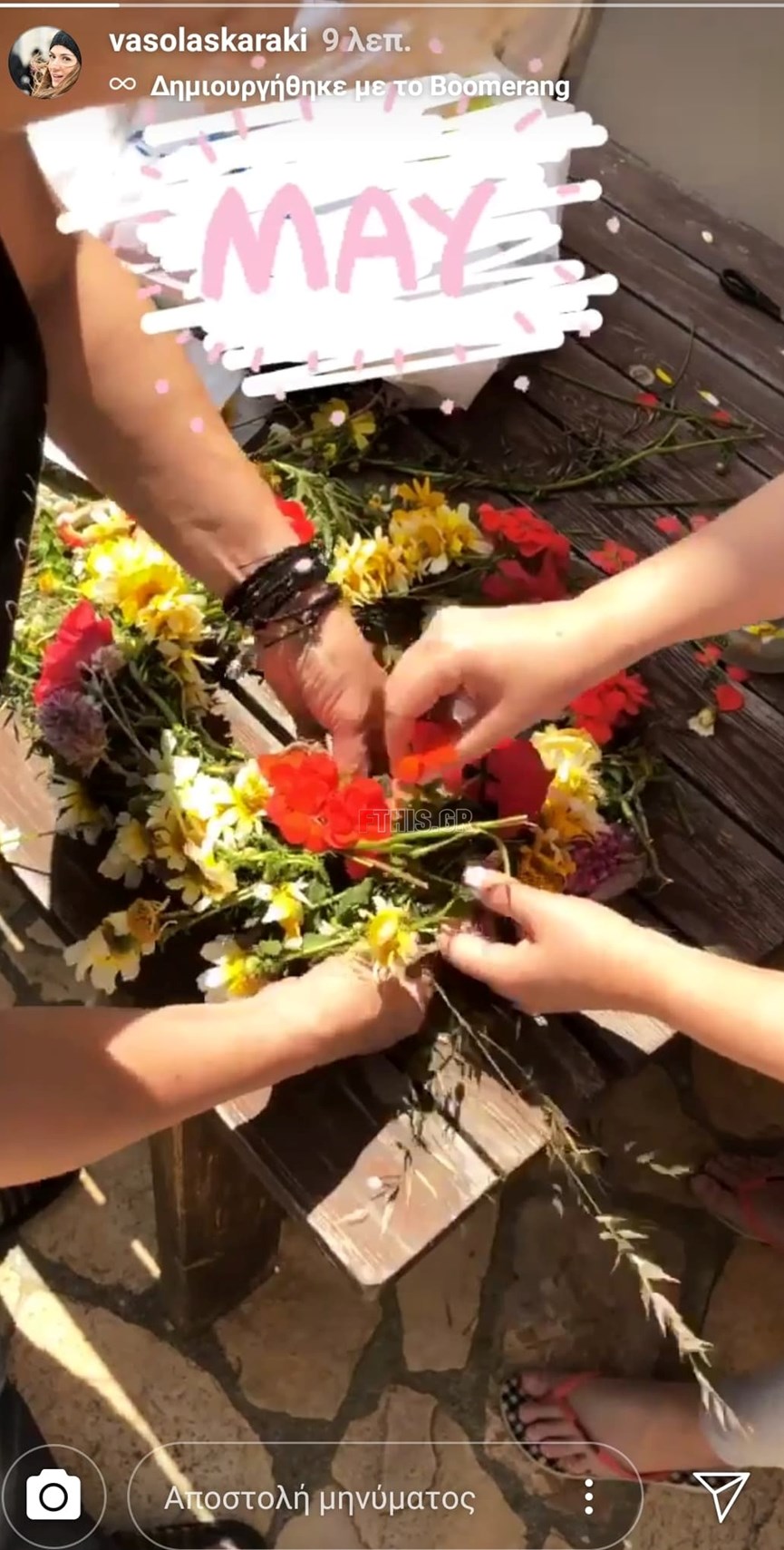 Η ηθποιός έκανε την πρώτη της ανάρτηση και την βλέπουμε να φτιάχνει το καθιερωμένο μαγιάτικο στεφάνι, την ίδια στιγμή που ο Λευτέρης Σουλτάτος ετοιμάζει το μεσημεριανό.