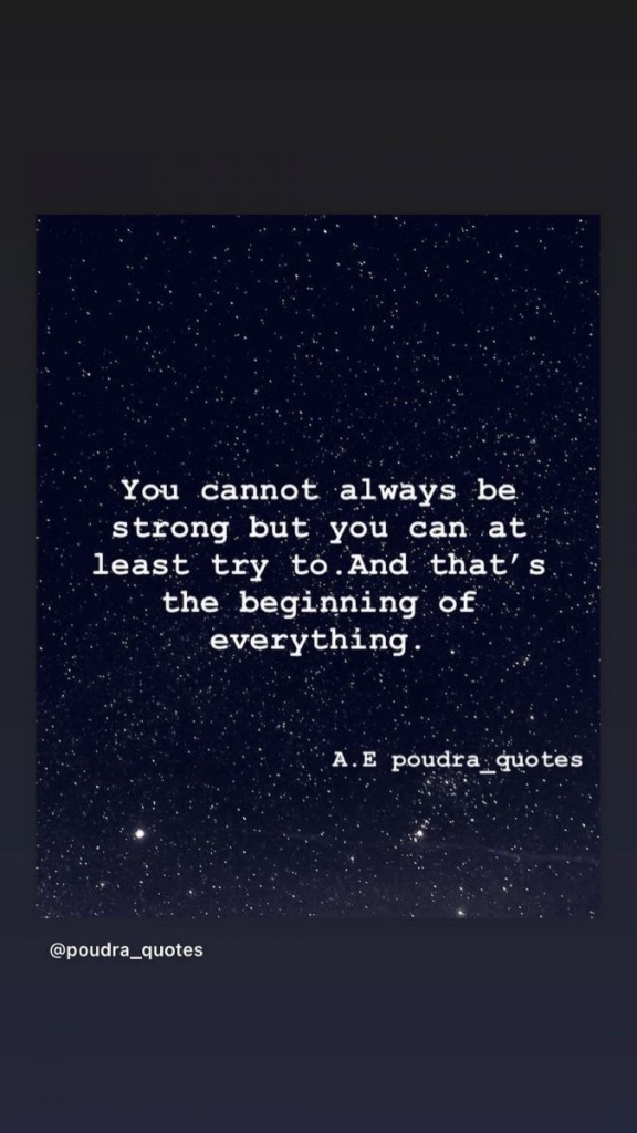 «Δε μπορείς να είσαι πάντα δυνατός αλλά τουλάχιστον μπορείς να προσπαθείς να είσαι. Και αυτή είναι η αρχή των πάντων», έγραψε η ίδια.