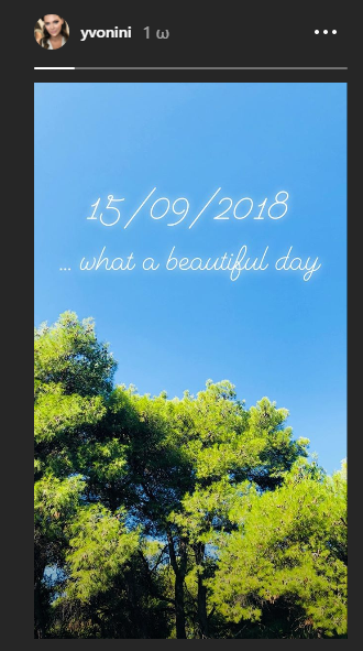 Η Υβόννη Μπόσνιακ το πρωί του Σαββάτου 15 Σεπτεμβρίου, μέσα από τον προσωπικό της λογαριασμό στο Instagram δημοσίευσε ένα story όλο νόημα, γράφοντας: "What a beautiful Day"