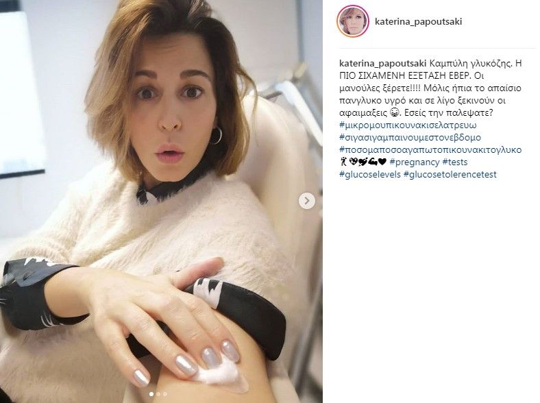 “Καμπύλη γλυκόζης. Η ΠΙΟ ΣΙΧΑΜΕΝΗ ΕΞΈΤΑΣΗ ΕΒΕΡ. Οι μανούλες ξέρετε!!!! Μόλις ήπια το απαίσιο πανγλυκο υγρό και σε λίγο ξεκινούν οι αφαιμαξεις!, σχολίασε χαρακτηριστικά.