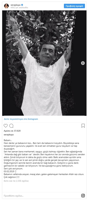 «Ο πατέρας μου. Ήμουν το κοριτσάκι του μπαμπά. Μεγαλώνοντας ήμουν περήφανη για σένα και χαίρομαι που σου μοιάζω. Μου έμαθες να είμαι συμπονετική, δυνατή και να με σέβονται οι γύρω μου. Πάντα έπαιρνα δύναμη από σένα. Τώρα ήρθε η ώρα να δείξω ότι είμαι πολύ δυνατή. Πλέον τα γενέθλιά μου είναι ένας δεσμός που θα μας ενώνει. Ξέρω ότι υπάρχει λόγος που έφυγες αυτή την ημέρα. Περιμένω τη μέρα αυτή που θα ξαναβρεθούμε. Σε αγαπάω τόσο πολύ», έγραψε η ίδια σε μήνυμά της.
