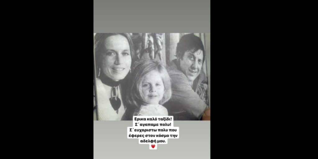 «Έρρικα καλό ταξίδι. Σε αγαπάμε πολύ. Σε ευχαριστώ πολύ που έφερες στον κόσμο την αδερφή μου» έγραψε στη φωτογραφία που δημοσίευσε.