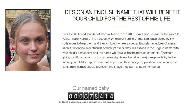 Η 19χρονη, λοιπόν, άνοιξε μια εταιρεία ονοματοδοσίας στην Κίνα.