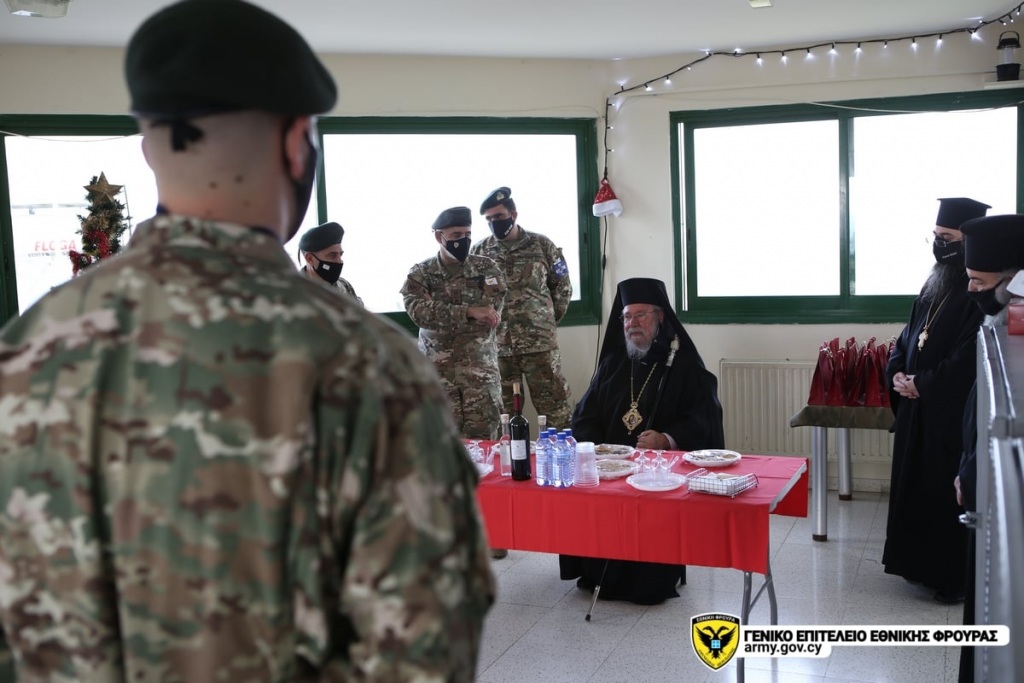 Στο πλαίσιο των εορτών των Χριστουγέννων και της Πρωτοχρονιάς, ο Αρχιεπίσκοπος Νέας Ιουστινιανής και πάσης Κύπρου Χρυσόστομος Β΄, συνοδευόμενος, αντίστοιχα, από τον Αρχηγό της Εθνικής Φρουράς, Αντιστράτηγο Δημόκριτο Ζερβάκη και τον Υπαρχηγό, Αντιστράτηγο Κωνσταντίνο Χρυσηλίου, πραγματοποίησαν επισκέψεις σε Φυλάκια στην περιοχή ευθύνης της 6ης Μηχανοκίνητης Ταξιαρχίας και 4ης Ταξιαρχίας Πεζικού.
