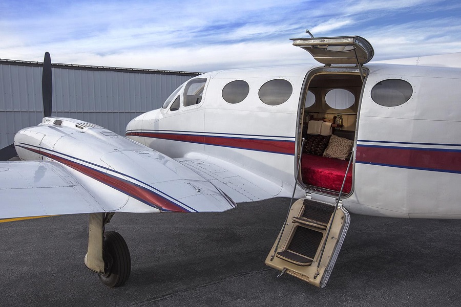 Το Cessna είναι εξοπλισμένο με κρεβάτι, κόκκινα σατέν σεντόνια και ειδικό μαξιλάρι. Ένα διπλό στρώμα είναι το μόνο που χωρά στην καμπίνα,. Ο Μπλέικ που έχει το παρατσούκλι Κάπτεν Τόνι, φορά ωτοασπίδες και μία κουρτίνα εμποδίζει να έχει άπλετη θέα στο τι συμβαίνει πίσω του, στην καμπίνα του αεροσκάφους.