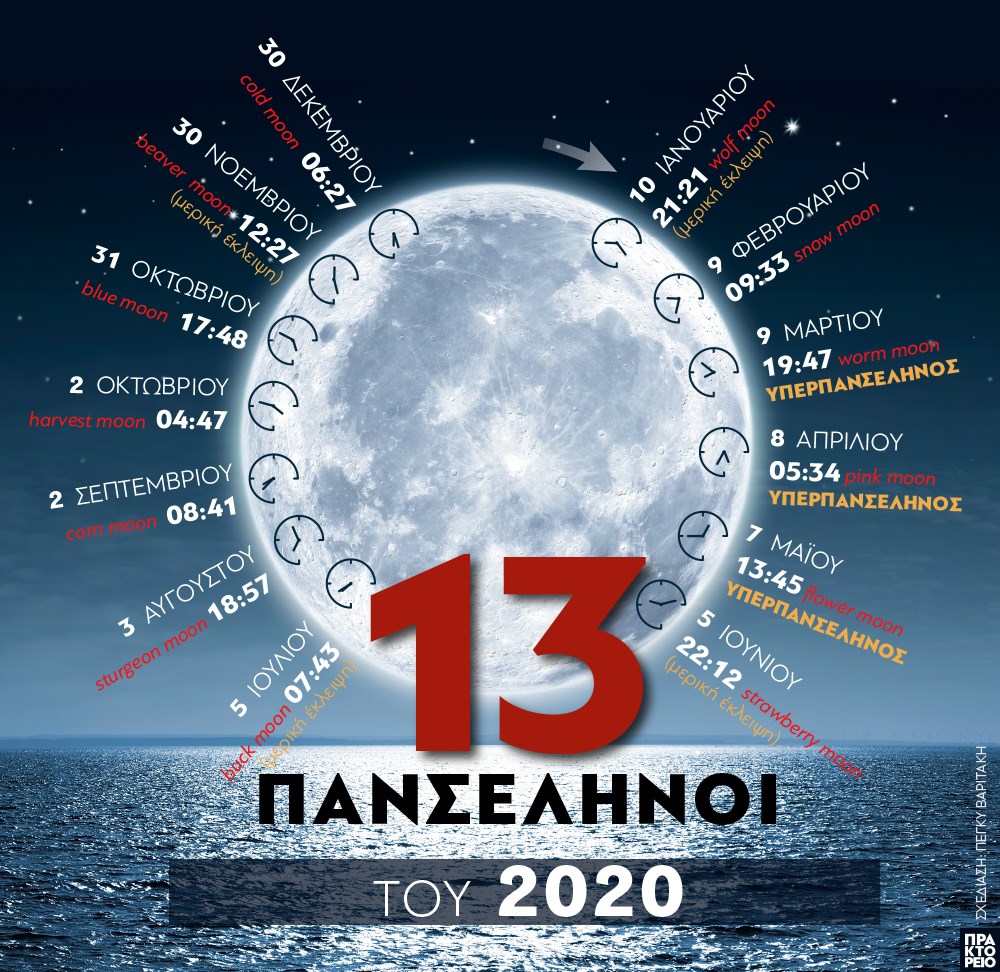 Wolf moon, snow moon, worm moon, pink moon, blue moon, strawberry moon… είναι μόνο μερικά από τα ονόματα των 13 Πανσελήνων του 2020.