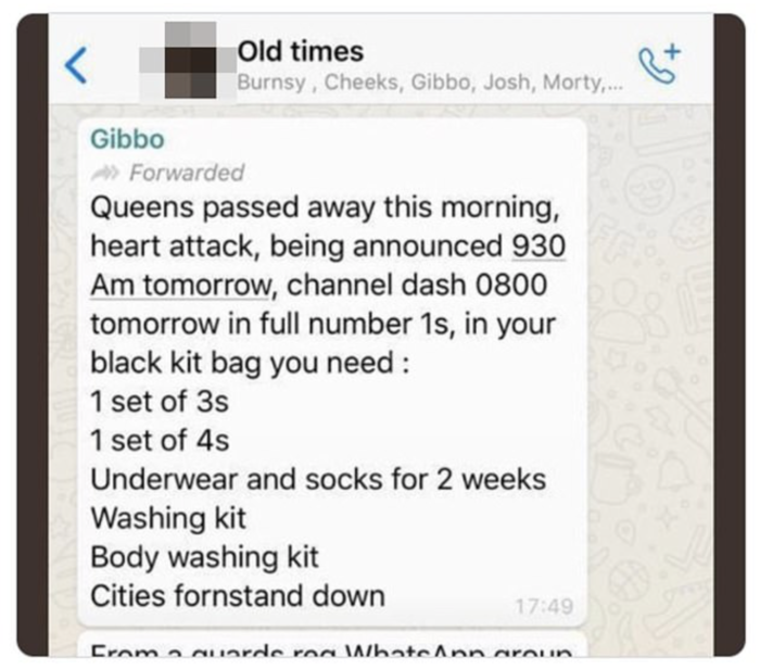 Μεγάλη αναστάτωση προκάλεσε στο Διαδίκτυο το βράδυ της Κυριακής μια... συνομιλία μεταξύ φίλων στο Whatsapp, που ήταν αρκετή για να διαδοθούν οι φήμες πως η βασίλισσα Ελισάβετ πέθανε.