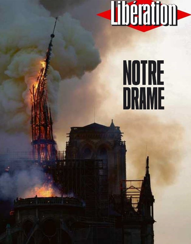 Όπως βλέπετε επέλεξε να αποτυπώσει την καταστροφή στην Παναγία των Παρισίων με μία φωτογραφία, από τον φλεγόμενο ναό και τίτλο Notre Drame (το δράμα μας) παραφράζοντας το Notre Dame (η Κυρία μας)!