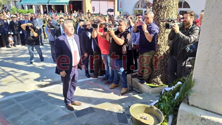 (Ο περιφερειάρχης Κρήτης Σταύρος Αρναουτάκης καταθέτει στεφάνι στο μνημείο)