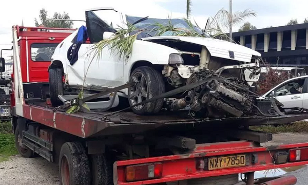 (Ό,τι επέμεινε από το αυτοκίνητο του νεαρού - φωτογραφία: parakritika.gr)