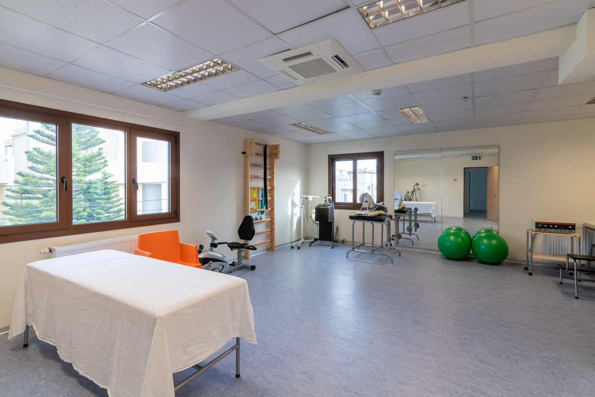 Εκτός από τους θαλάμους και τους χώρους υγιεινής, υπήρχαν ήδη γραφεία της διοίκησης, ιατρείο, φυσικοθεραπευτήριο, δύο σαλόνια, βιβλιοθήκη, κουζίνα, δύο τραπεζαρίες, τρία δωμάτια ξεκούρασης για το προσωπικό, κουρείο και πλυντήριο. Στους εξωτερικούς χώρους του ισογείου οι μεγάλοι χώροι πρασίνου, όπως και εσωτερικός κήπος με σιντριβάνι αποτελούσαν, και εξακολουθούν να αποτελούν, πόλο έλξης για τους τροφίμους και τους επισκέπτες κατά τους καλοκαιρινούς μήνες και τις μέρες που ο καιρός το επιτρέπει.