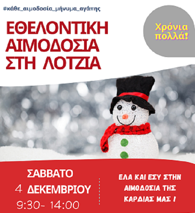 Η Εθελοντική Αιμοδοσία πραγματοποιείται κάθε Σάββατο στο αίθριο της Λότζια.