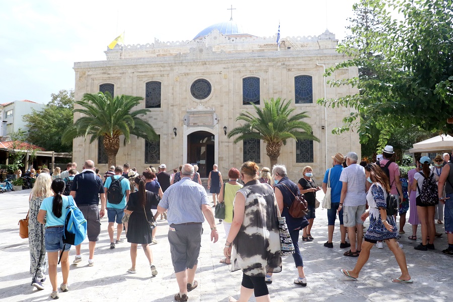 Με τουρίστες γέμισε το μεσημέρι της Τρίτης το κέντρο του Ηρακλείου.