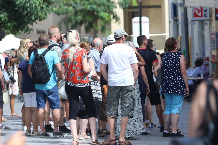 Σε μία περίοδο κατά την οποία η πόλη βρίσκεται υπό το καθεστώς περιοριστικών μέτρων, η πλειοψηφία των ξένων επισκεπτών που ξεναγήθηκαν στο κέντρο, φορούσαν την προστατευτική τους μάσκας ενώ άλλοι... όχι.