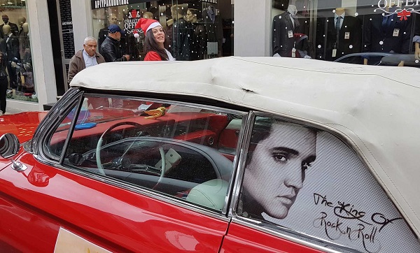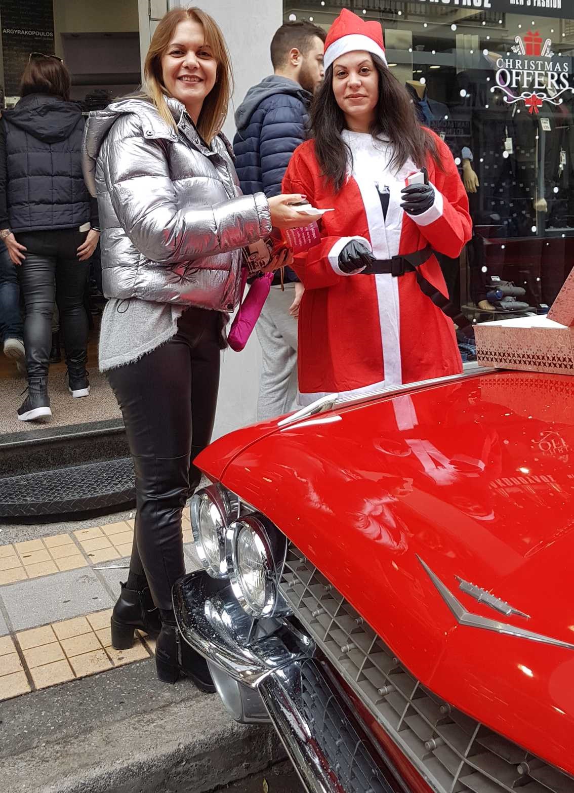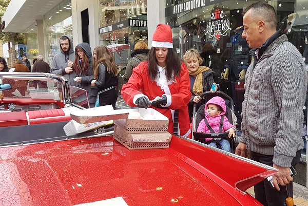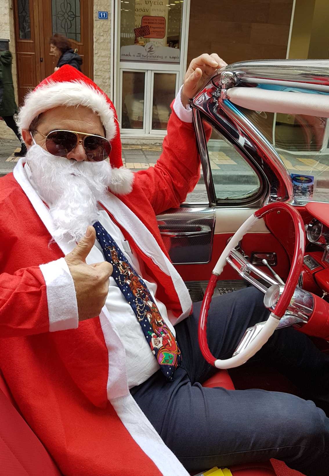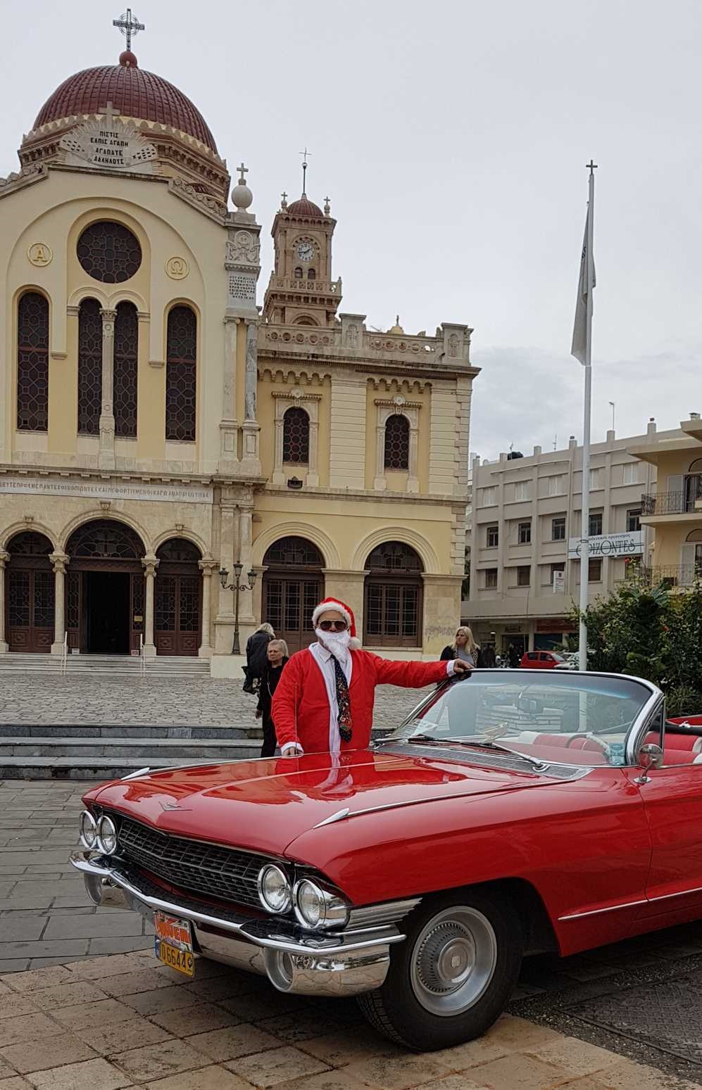 Το αυτοκίνητο αυτό ανήκει στον γνωστό συλλέκτη κλασικών οχημάτων Μιχάλη Ρασιδάκη ο οποίος είχε την ιδέα αυτή, ντύθηκε Άη Βασίλης και πρόσφερε γλυκά στους περαστικούς καθώς και πολλές ευχές για μια ευτυχισμένη νέα χρονιά. Μικροί και μεγάλοι δεν έχασαν την ευκαιρία να φωτογραφηθούν με το κόκκινο αυτοκίνητο του Αι Βασίλη.