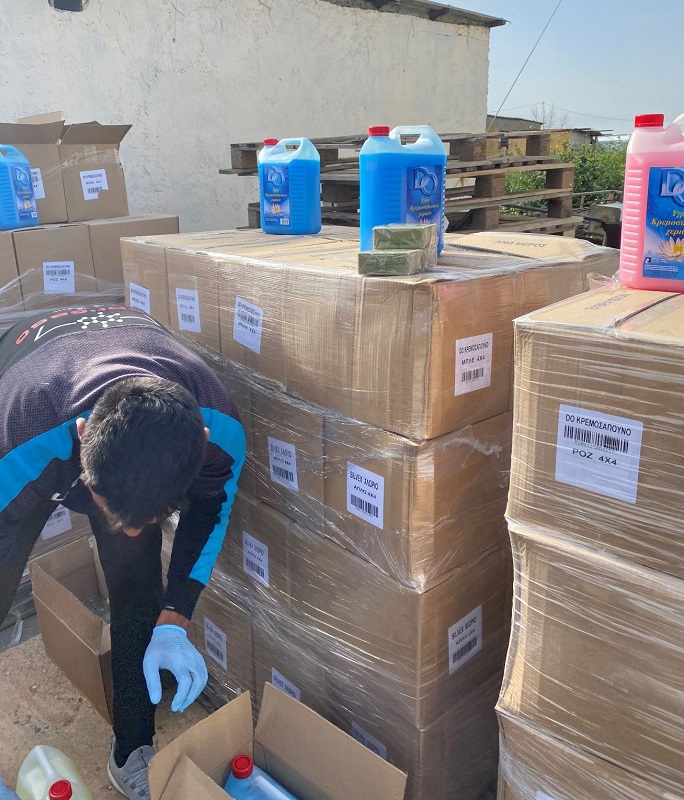 Πρόκειται για χλωρίνες, πράσινα σαπούνια και κρεμοσάπουνα που θα καλύψουν τις ανάγκες των κατοίκων για μεγάλο χρονικό διάστημα ενώ αύριο, Μεγάλη Πέμπτη θα πραγματοποιηθεί μυοκτονία που θα θωρακίσει τον καταυλισμό για όλο το έτος.