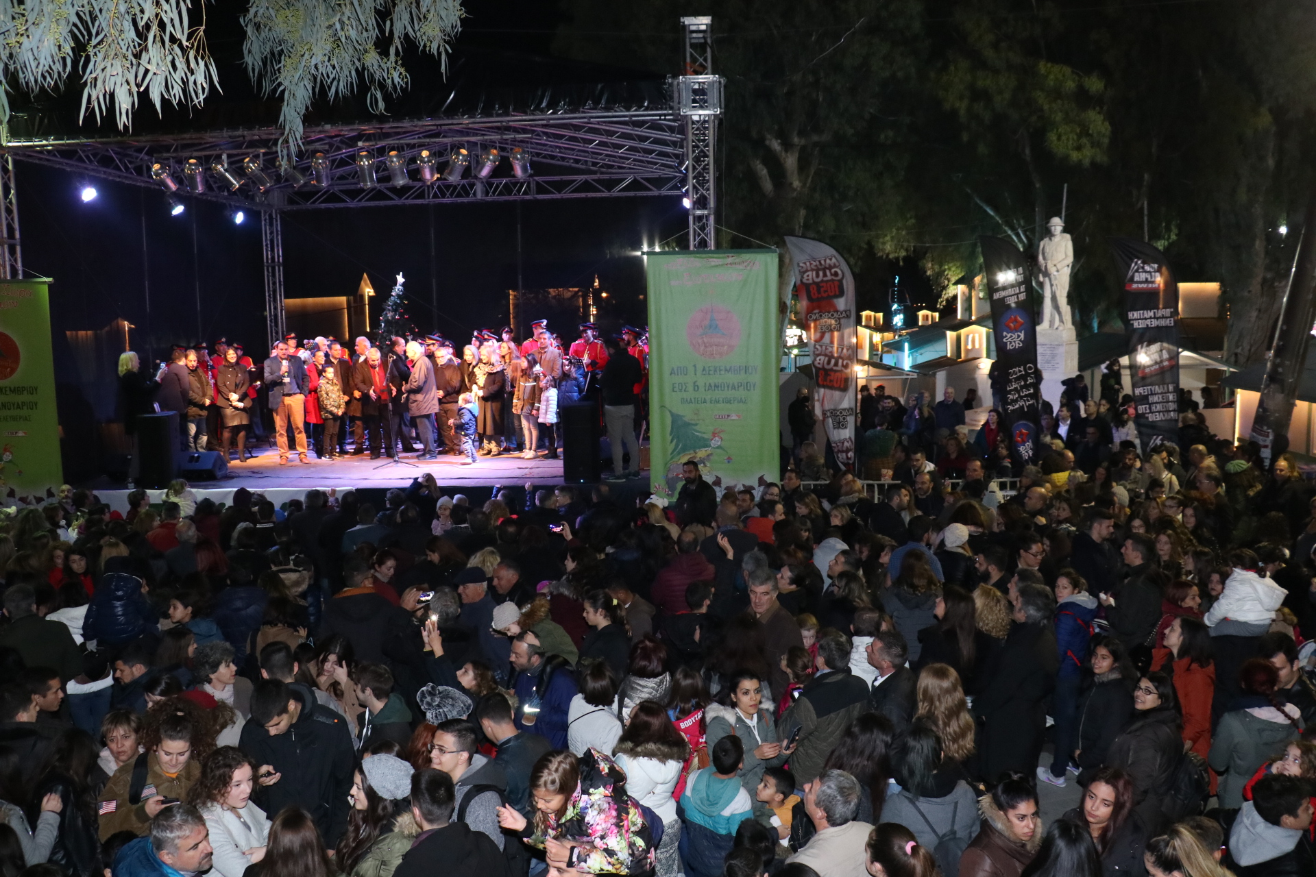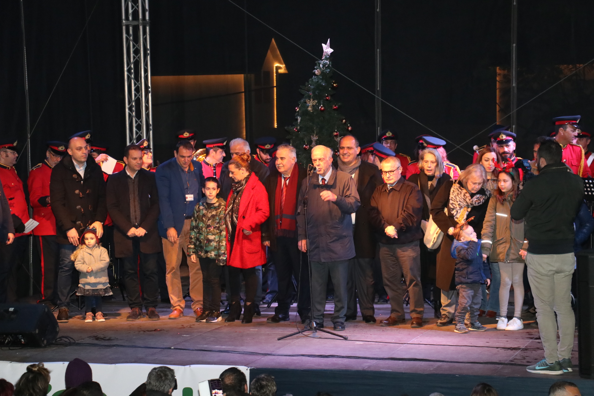 Η φωταγώγηση έγινε από τον δήμαρχο της πόλης Βασίλη Λαμπρινό, παρουσία της δημοτικής αρχής, μελών του δημοτικού συμβουλίου, τοπικών φορέων και αρκετού κόσμου, ο οποίος αψήφησε το τσουχτερό κρύο και βρέθηκε στο κέντρο της πόλης.