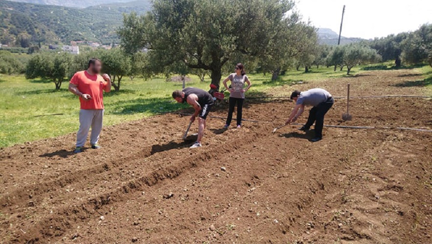Δημιούργησε όμως μια άλλη ευκαιρία και με δική τους πρωτοβουλία και την αρωγή του θεραπευτικού προγράμματος αξιοποιήθηκε ο ελαιώνας του προγράμματος για να φυτευτούν εποχιακά κηπευτικά, τα οποία καλύπτουν πρωτίστως δικές τους ανάγκες, αλλά θα διατεθούν και σε όποιον χρειάζεται στην κοινωνία του Ηρακλείου. Έτσι ο χρόνος γεμίζει παραγωγικά και δημιουργικά, αυξάνεται το αίσθημα της ανταποδοτικότητας, της αλληλοβοήθειας και της αλληλεγγύης, υπάρχει επαφή με τη φύση και την πρωτογενή παραγωγή και γεννιούνται νέες ιδέες δραστηριοποίησης. Ήδη δημιουργούνται σκέψεις να δημιουργηθεί ΚΟΙΝΣΕΠ μέσα από αυτή τη δράση.