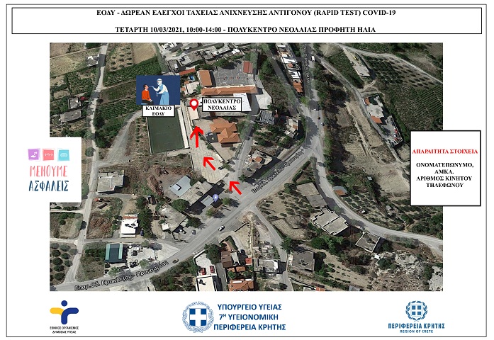 Τετάρτη 10/03/2021 από κλιμάκια του ΕΟΔΥ στον Προφήτη Ηλία Ηρακλείου.