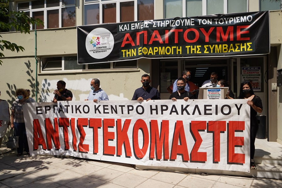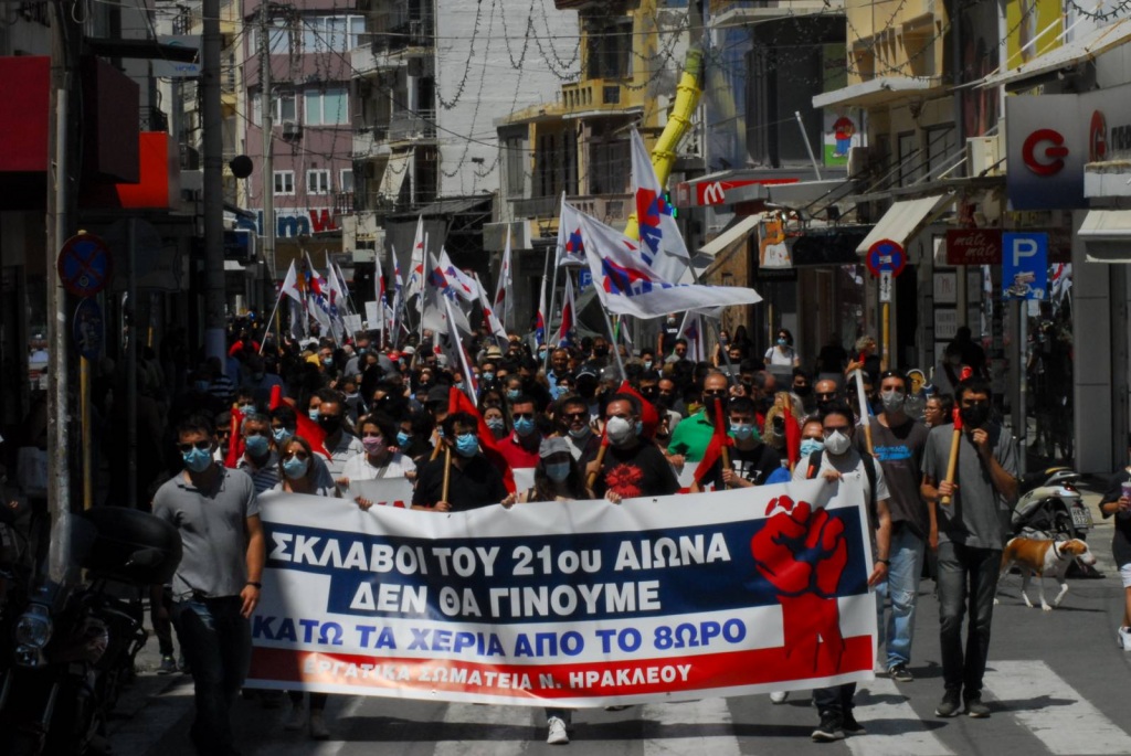 Στο Ηράκλειο, η πρώτη κινητοποίηση πραγματοποιήθηκε από το ΠΑΜΕ στις 10.00 το πρωί. Η προσυγκέντρωση πραγματοποιήθηκε στην Πλατεία Ελευθερίας, από όπου εκλεγμένοι αντιπρόσωποι των εργατικών συνδικάτων και φορέων, πραγματοποίησαν ομιλίες καταγγέλοντας το νομοσχέδιο Χατζηδάκη, ως ένα νομοσχέδιο το οποίο "έρχεται να ενισχύσει την εργοδοτική αυθαιρεσία".