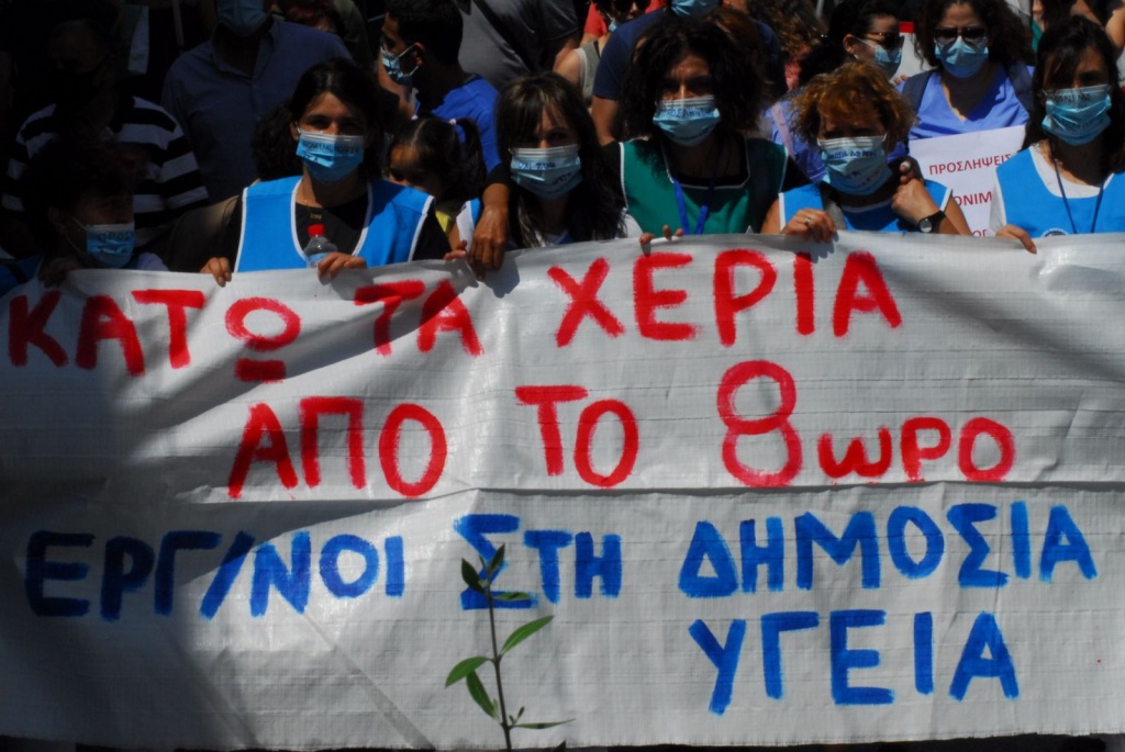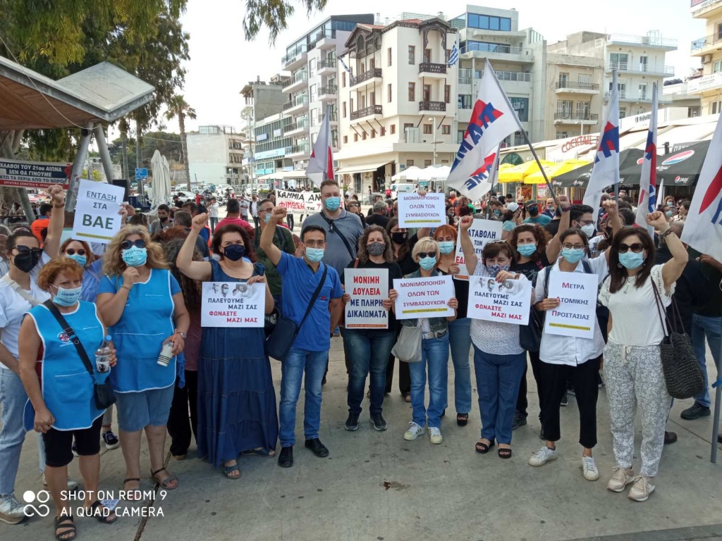 Μία ωρα αργότερα, στις 11.00 το πρωί , μαζική κινητοποίηση πραγματοποιήθηκε και από τα σωματεία εργαζομένων του Εργατικού Κέντρου Ηρακλείου, ανταποκρινόμενα στο κάλεσμα της ΓΣΣΕ και της ΑΔΕΔΥ για απεργία.