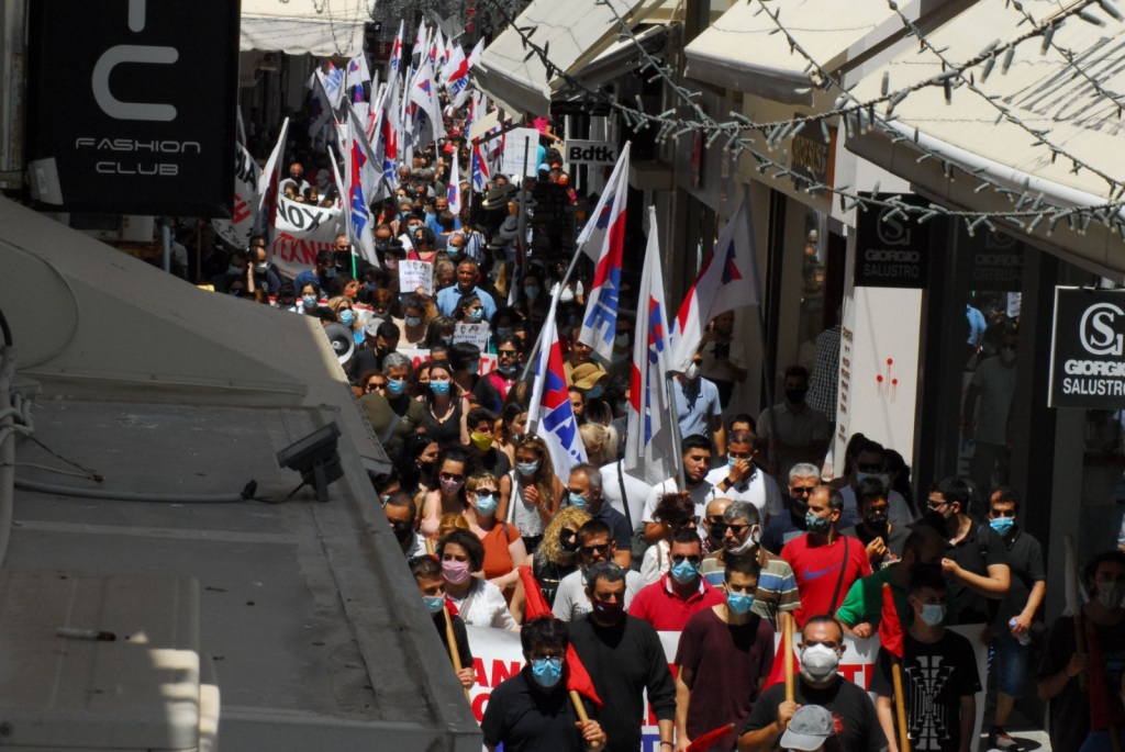 Δυναμικό παρόν στη συγκέντρωση του ΠΑΜΕ έδωσε το Συνδικάτο Οικοδόμων Ν. Ηρακλείου και οι εργαζόμενοι σε ΠΑΓΝΗ και Βενιζέλειο, ενώ στη συνέχεια οι συγκεντρωμένοι στοιχήθηκαν πίσω από τα μπλοκ τους πραγματοποιώντας οργανωμένη πορεία στους δρόμους της πόλης.