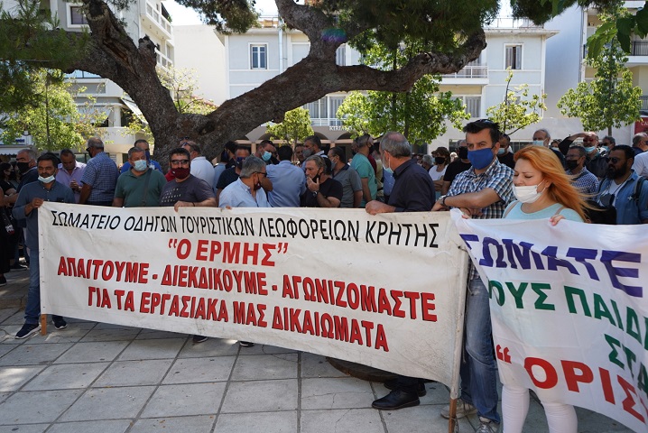 Ηχηρό παρόν με την παρουσία του και το πανό του έδωσε μεταξύ άλλων το Σωματείο Οδηγών Τουριστικών Λεωφορείων Κρήτης "Ο Ερμής".
