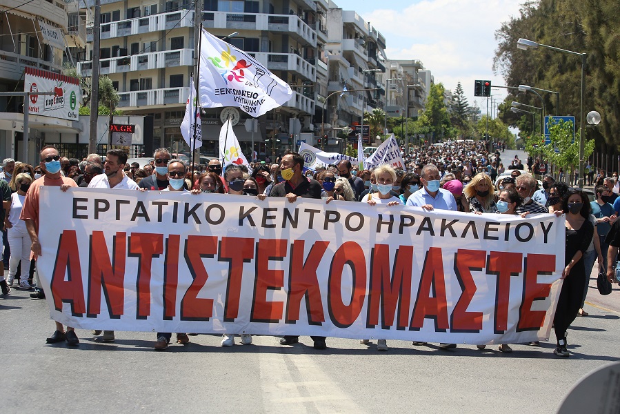 Με δυναμικό παλμό και πλήθος κόσμου στους δρόμους του Ηρακλείου, πραγματοποιήθηκε εχθές Πέμπτη, η 24ωρη απεργία που είχαν προκηρύξει ΓΣΣΕ, ΑΔΕΔΥ και εργατικά σωματεία, αντιδρώντας στην ψήφιση του νέου νομοσχεδίου για τα εργασιακά.