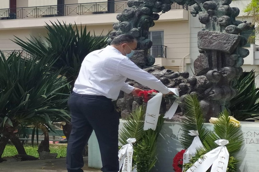 Τιμώντας την Εργατική Πρωτομαγιά, ο Πρόεδρος της ΠΕΔ Κρήτης και πρώην Πρόεδρος του Εργατικού Κέντρου Ηρακλείου κ. Γιάννης Κουράκης, κατέθεσε σήμερα στεφάνι στο Μνημείο των Ηρώων της Εργατικής Τάξης που βρίσκεται στο χώρο του ΕΚΗ.