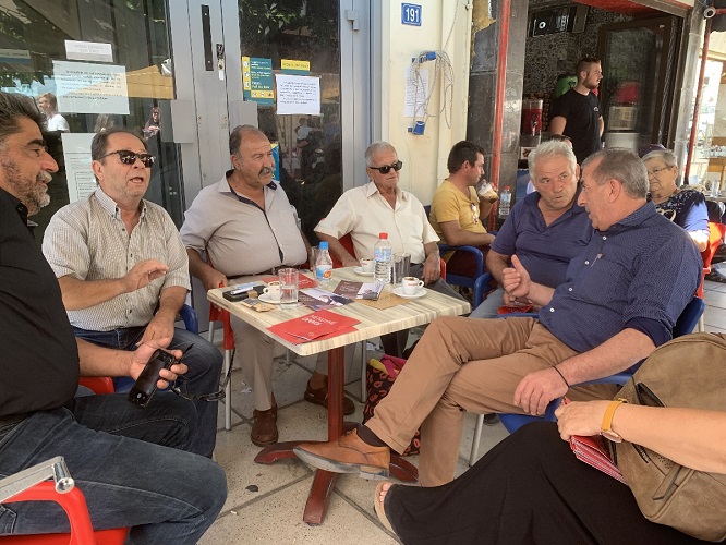 Ο βουλευτής και τα μέλη του κόμματος στις συνομιλίες που είχαν με επαγγελματίες και πολίτες που βρίσκονταν στο χώρο του παζαριού των Μοιρών, στην αγορά του Τυμπακίου, αλλά και στο Ζαρό, άκουσαν την αγωνία του κόσμου, τόσο για τη δραματική πτώση του τζίρου στην αγορά, όσο και τη γενικότερη οικονομική κρίση, η οποία πρώτη φορά χτυπά με τόση σφοδρότητα την Κρήτη.\