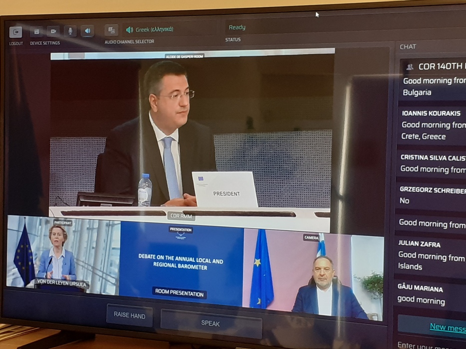 Ο Πρόεδρος της Περιφερειακής Ένωσης Δήμων Κρήτης και Τακτικό Μέλος της Επιτροπής των Ευρωπαϊκών Περιφερειών κ. Γιάννης Κουράκης συμμετείχε στη σύνοδο μέσω τηλεδιάσκεψης.