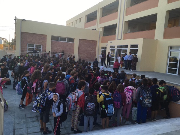Ολοκληρώθηκε η μετεγκατάσταση των μαθητών του 1ου Δημοτικού Σχολείου Γαζίου, έπειτα από την ολοκλήρωση των απαραίτητων εργασιών στο νέο κτίριο. Έτσι τα παιδιά ξεκίνησαν σήμερα τα μαθήματά τους στο νέο σχολείο.