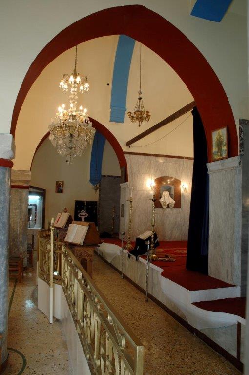 Ο ναός είναι μικρών διαστάσεων, τρίκλιτος και υπέστη αλλαγές στο πέρασμα των χρόνων . Στο εσωτερικό του, δεν υπάρχουν σήμερα εμφανείς τοιχογραφίες . Η διακόσμηση περιορίζεται στο ξύλινο τέμπλο των πλάγιων ιερών, σε φορητές εικόνες και σε εντοίχια ανάγλυφα.